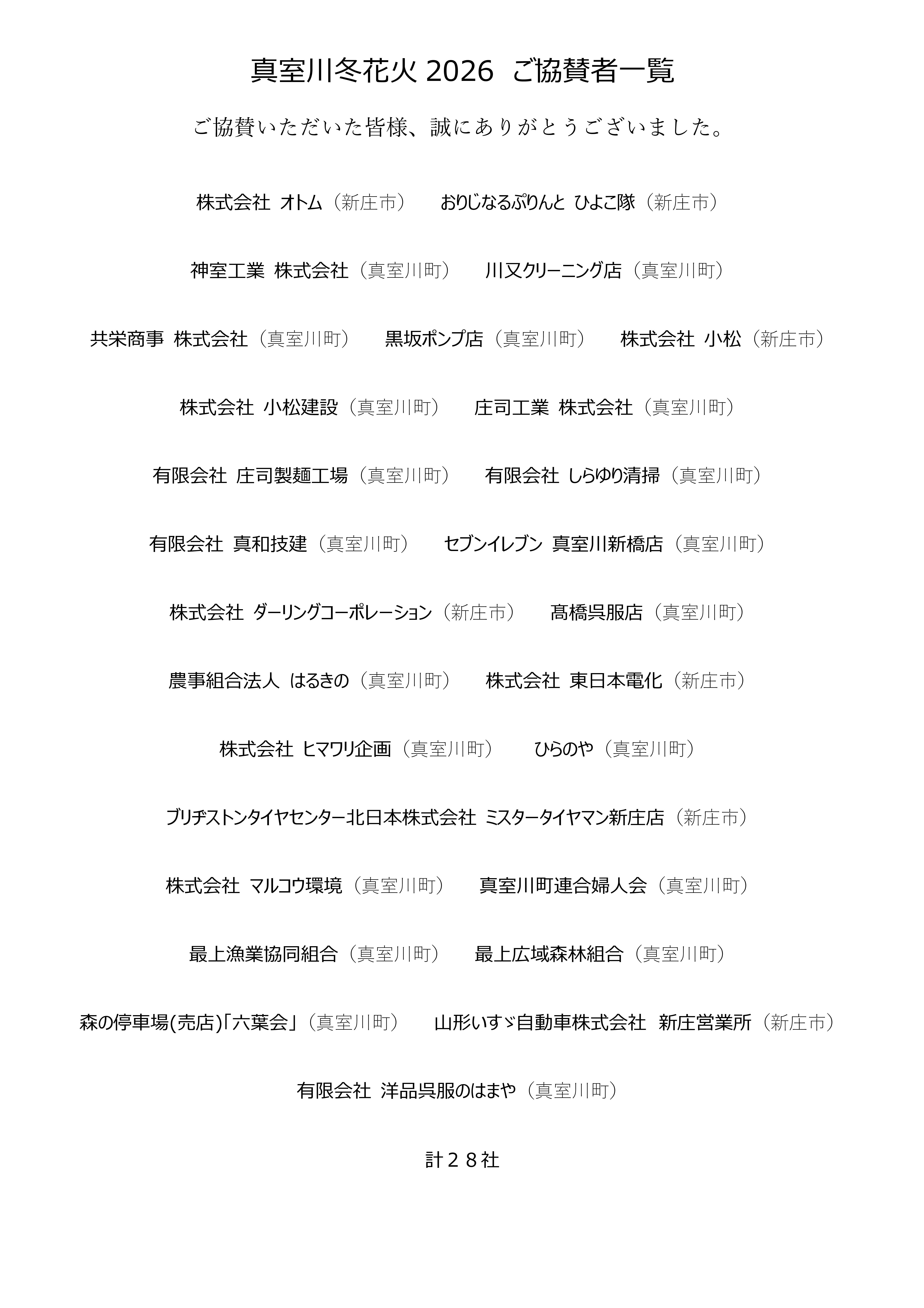 WhiteAthlon2026&真室川冬花火 ご協賛いただき、誠にありがとうございました!